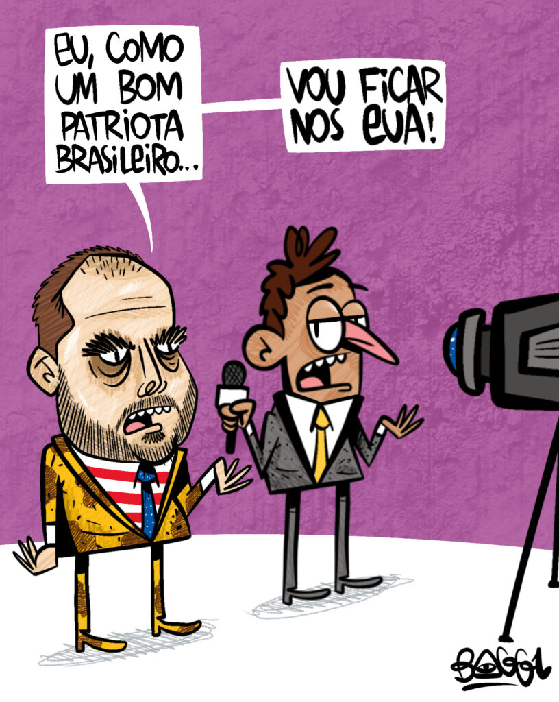 COAÇÃO – O deputado, denunciado pela Procuradoria-Geral da República sob a acusação de coação, alega que sua permanência no exterior é forçada e se deve a perseguições políticas. Nos EUA, o deputado comanda uma campanha para que o presidente americano, Donald Trump, determine punições a autoridades brasileiras, além de ter articulado o tarifaço contra produtos brasileiros, com o objetivo de livrar da prisão seu pai, condenado a 27 anos na ação da trama golpista.